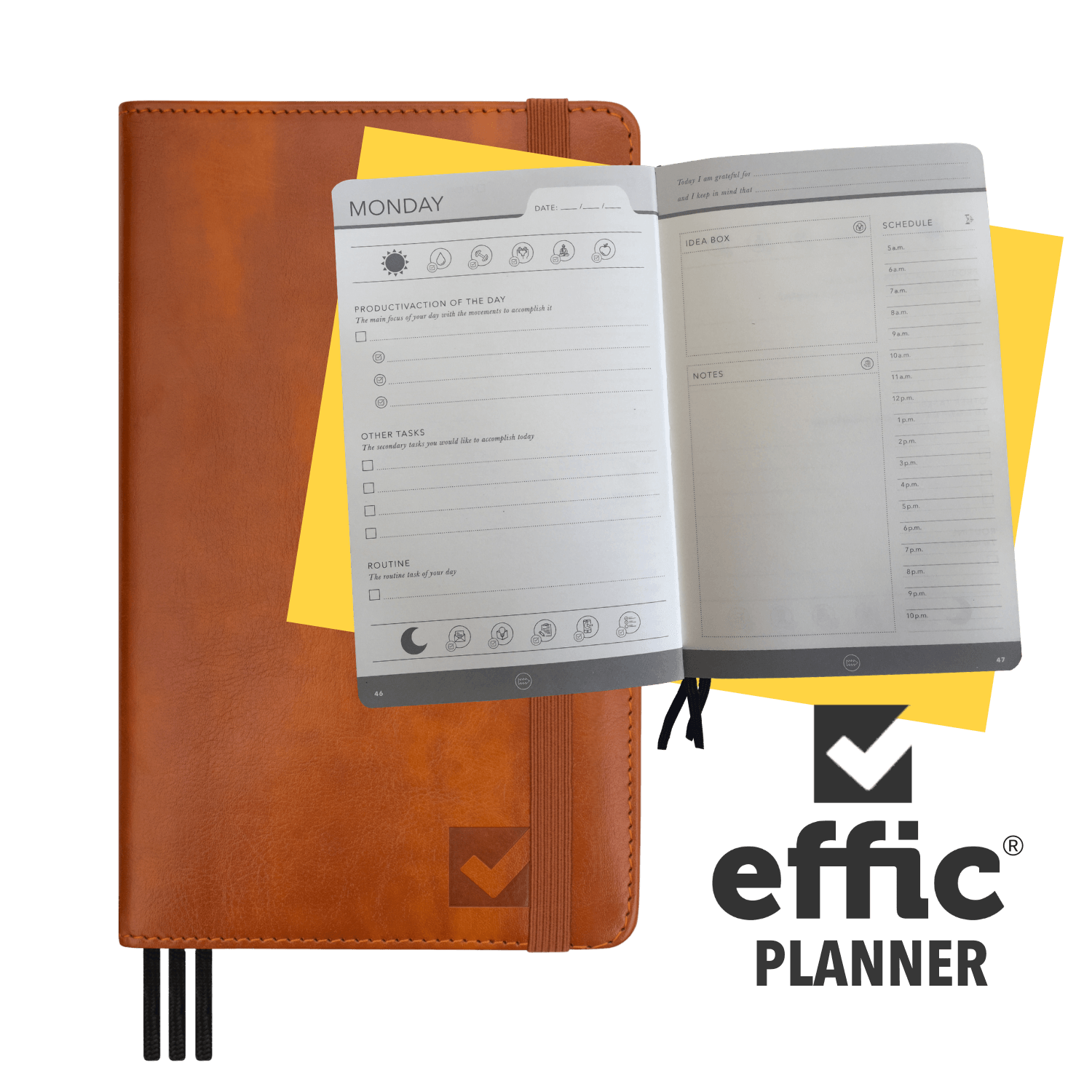 Much more than a simple agenda, the Effic Planner is a proven productivity system to plan, prioritize, and execute with clarity. Designed for entrepreneurs, it helps you turn ideas into concrete actions, track your progress, and build lasting momentum—day after day.